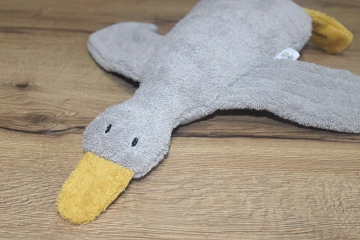 ეს რბილი იხვი ჩასახუტებელი სათამაშოა და სევე სენსორული ინსტრუმენტიც.